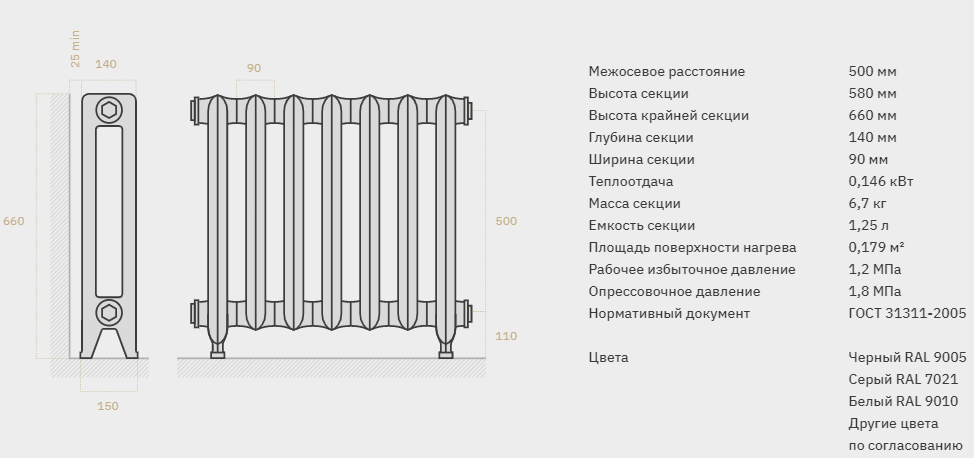 Радиаторы делают на заказ в любом количестве секций, как с ножками так и без. Возможны различные варианты покраски.