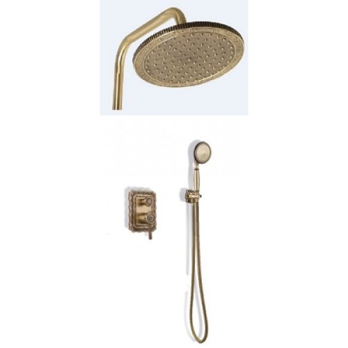 Данный смеситель станет прекрасным украшением вашей ванной комнаты.Бронзовое напыление придает изделию элегантный внешний вид и идеально впишется в дизайн вашего интерьера. Необычное оформление крана, душевого шланга с элементам геометрических узоров смотрится очень лаконично и строго, сочетается с ваннами любых видов.